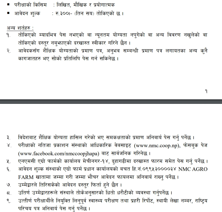 Results will be published on the official website (www.nmc.coop.np) and Facebook page (facebook.com/nmccoopjhapa).