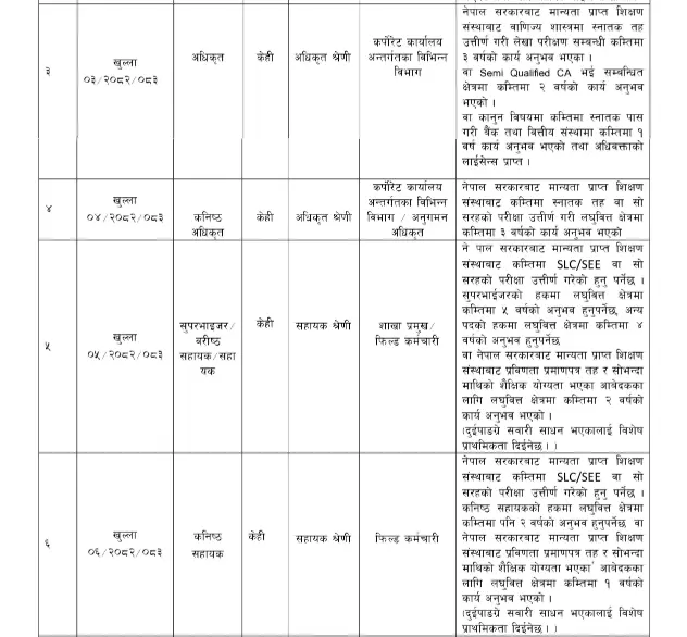 - SLC/SEE passed with minimum 4-5 years of experience for supervisor positions.