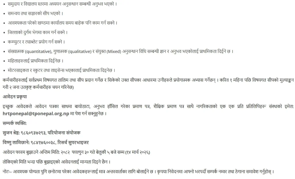 This is a great opportunity for candidates seeking NGO jobs in Nepal, research jobs, public health jobs, and social work careers.