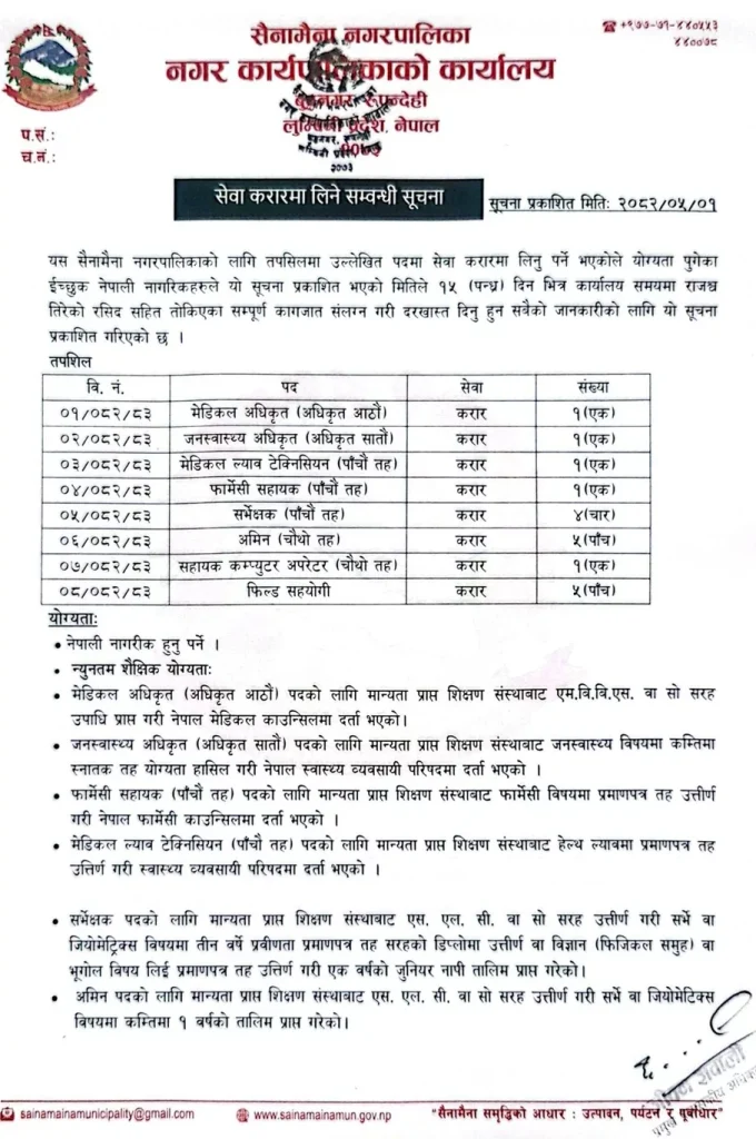 Sainamaina Municipality Vacancy 2082 โ Job Announcement