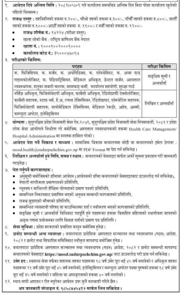 Sudurpashchim Province Vacancy 2082 – Bayalpata Hospital Jobs