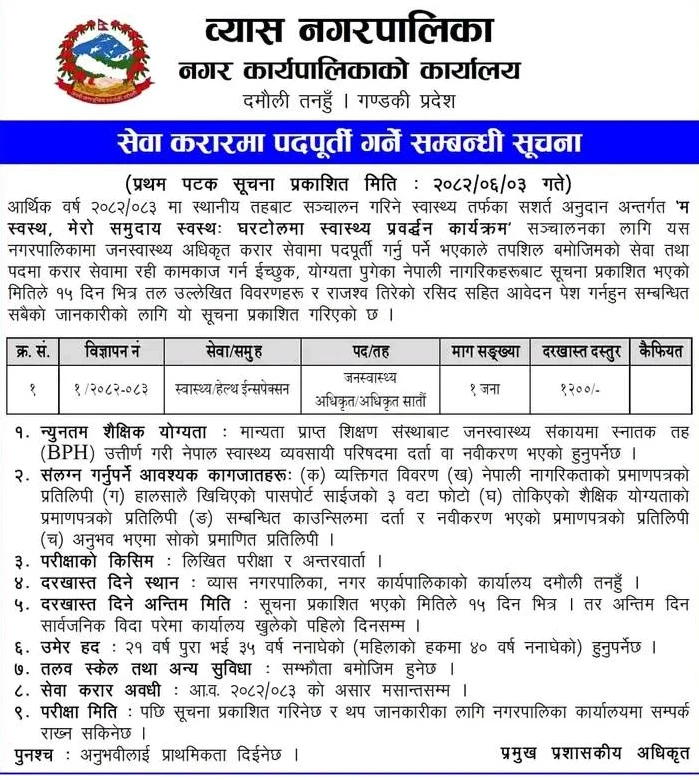Vyash Municipality, Office of Municipal Executive, Damauli, Tanahun – Gandaki Province